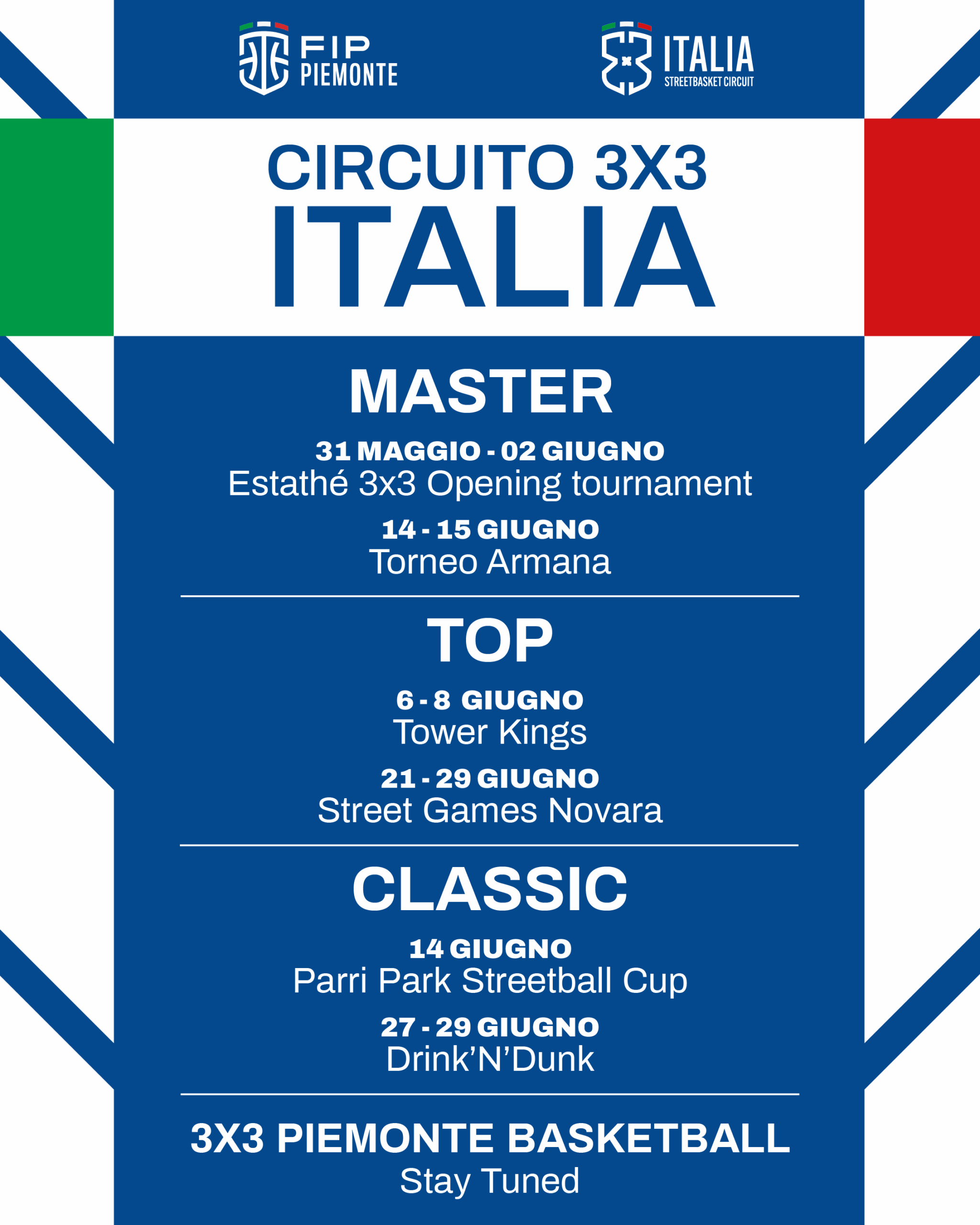 A concludere il ciclo dei tornei che si terranno nella nostra regione, ci sarà il “3X3 Piemonte Basketball”, torneo organizzato dal CR Piemonte e dedicato unicamente alle categorie giovanili.