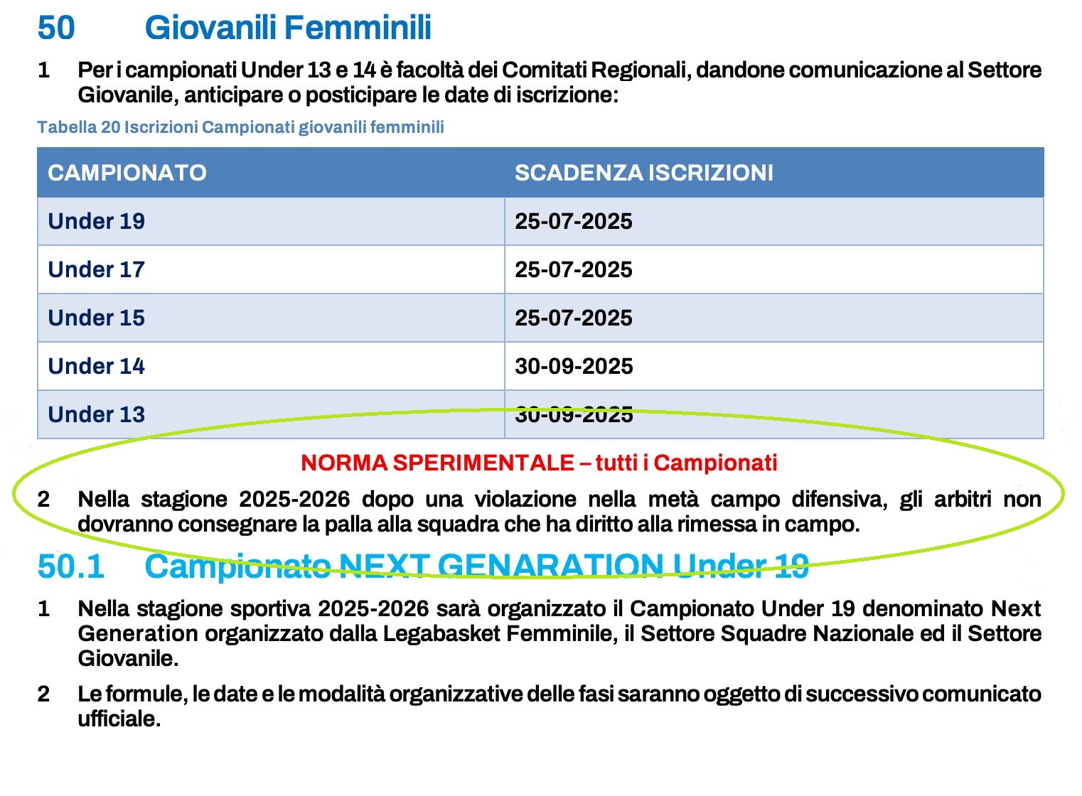“Nella stagione 2025-2026, dopo una violazione nella metà campo difensiva, gli arbitri non dovranno consegnare la palla alla squadra che ha diritto alla rimessa in campo”.