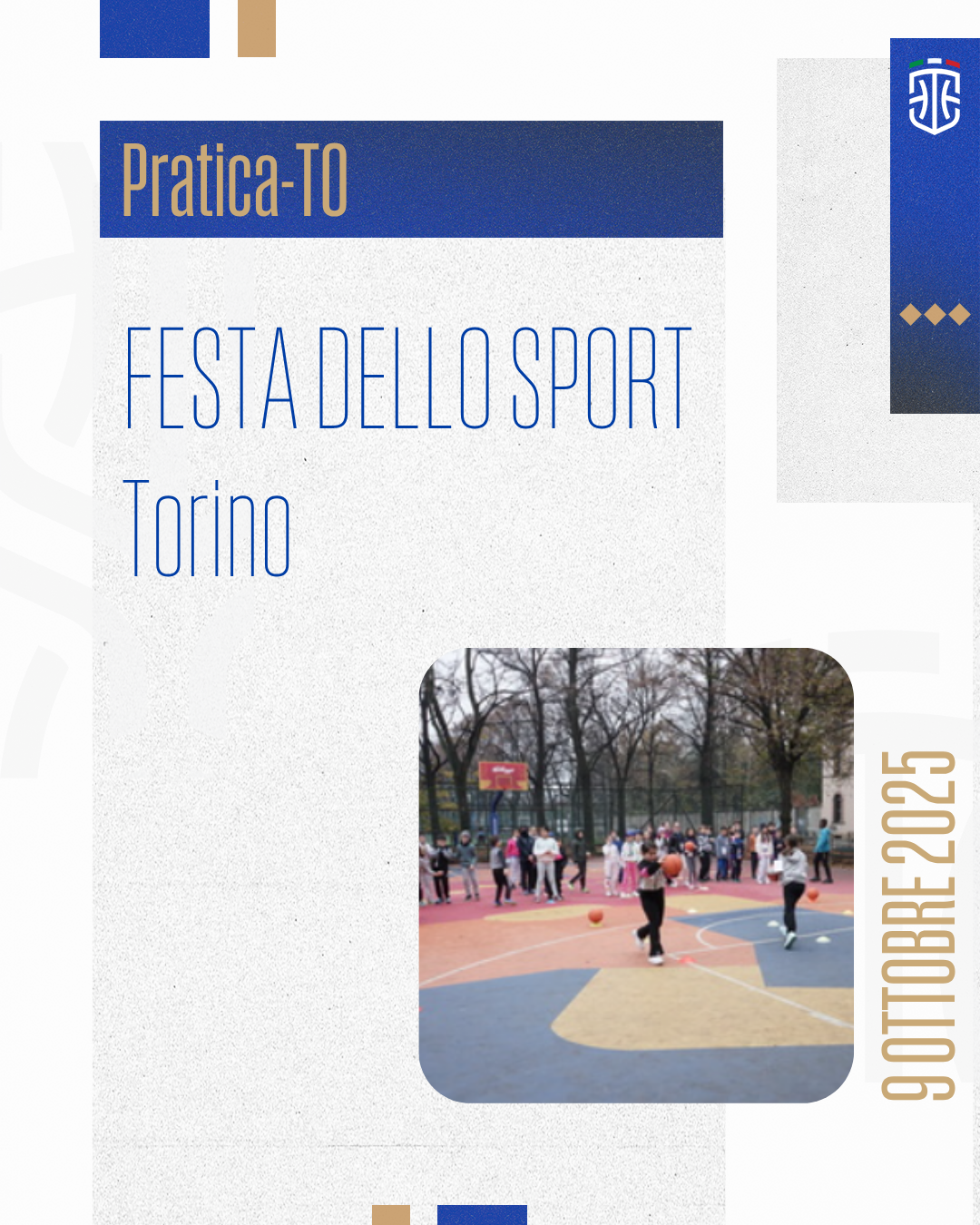Si terrà domani, 9 Ottobre 2025, Pratica-TO, la festa dello sport dedicata alle scuole elementari e medie che permetterà a tanti giovanissimi di sperimentare tantissimi sport in una cornice di sano divertimento.