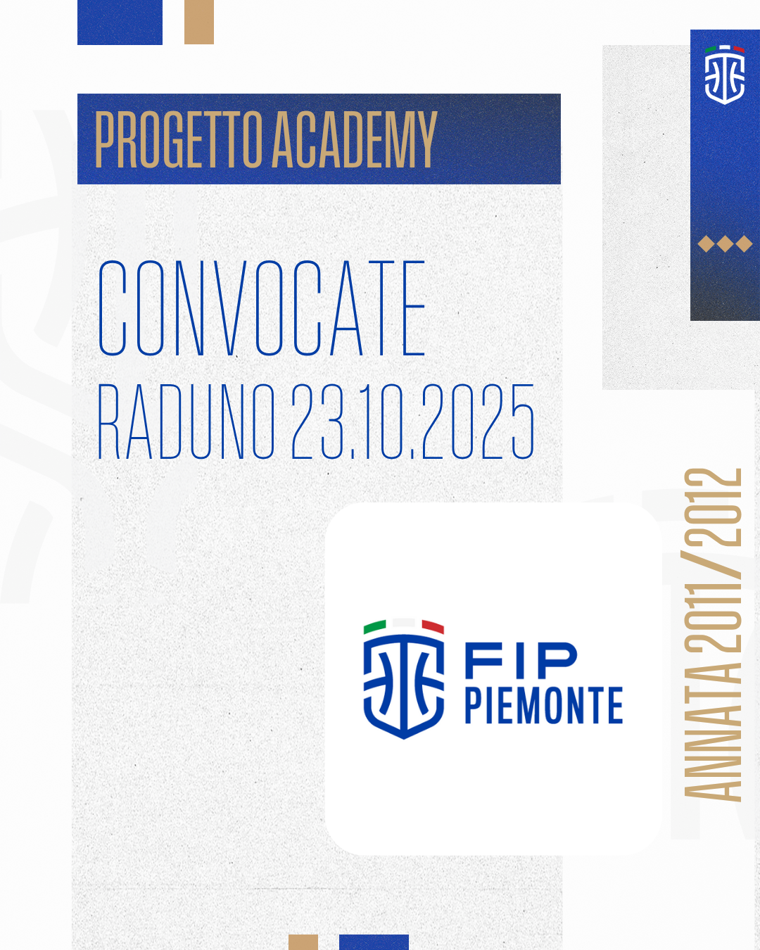 Cominciano i raduni in ambito del Progetto Academy, con le prime convocate al quello di Venaria, che si terrà il 23 ottobre 2025, presso la Palestra SportClub – via G. di Vittorio, 18.