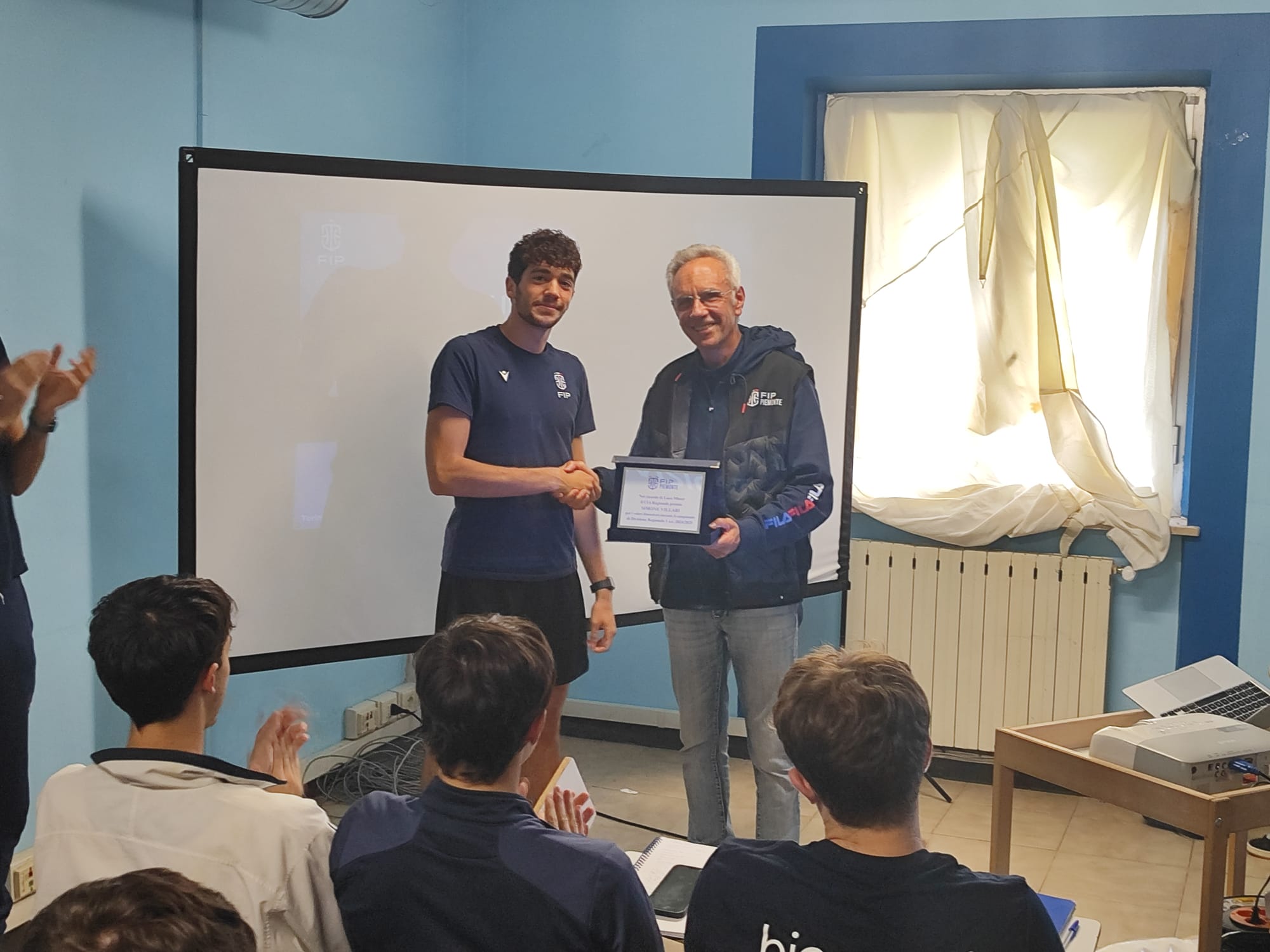 Un’occasione speciale in cui il nostro Responsabile dell’Ufficio Gare Roberto Chieppa ha potuto consegnare il Premio Tibiletti a Simone Villari, neo promosso in serie C, per l’impegno e i valori mostrati sul campo durante la stagione precedente.