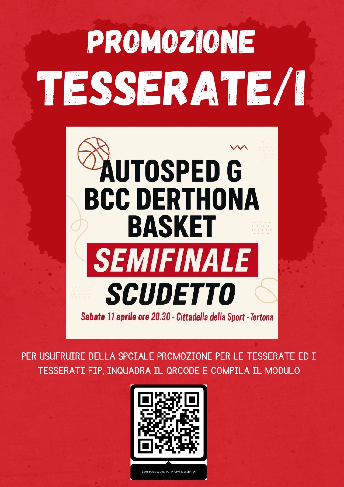 In occasione di gara 2 della semifinale scudetto del campionato di Serie A Femminile, in programma sabato 11 aprile alle ore 20:30, BCC DERTHONA BASKET ha riservato una promozione alle tesserate e ai tesserati FIP: